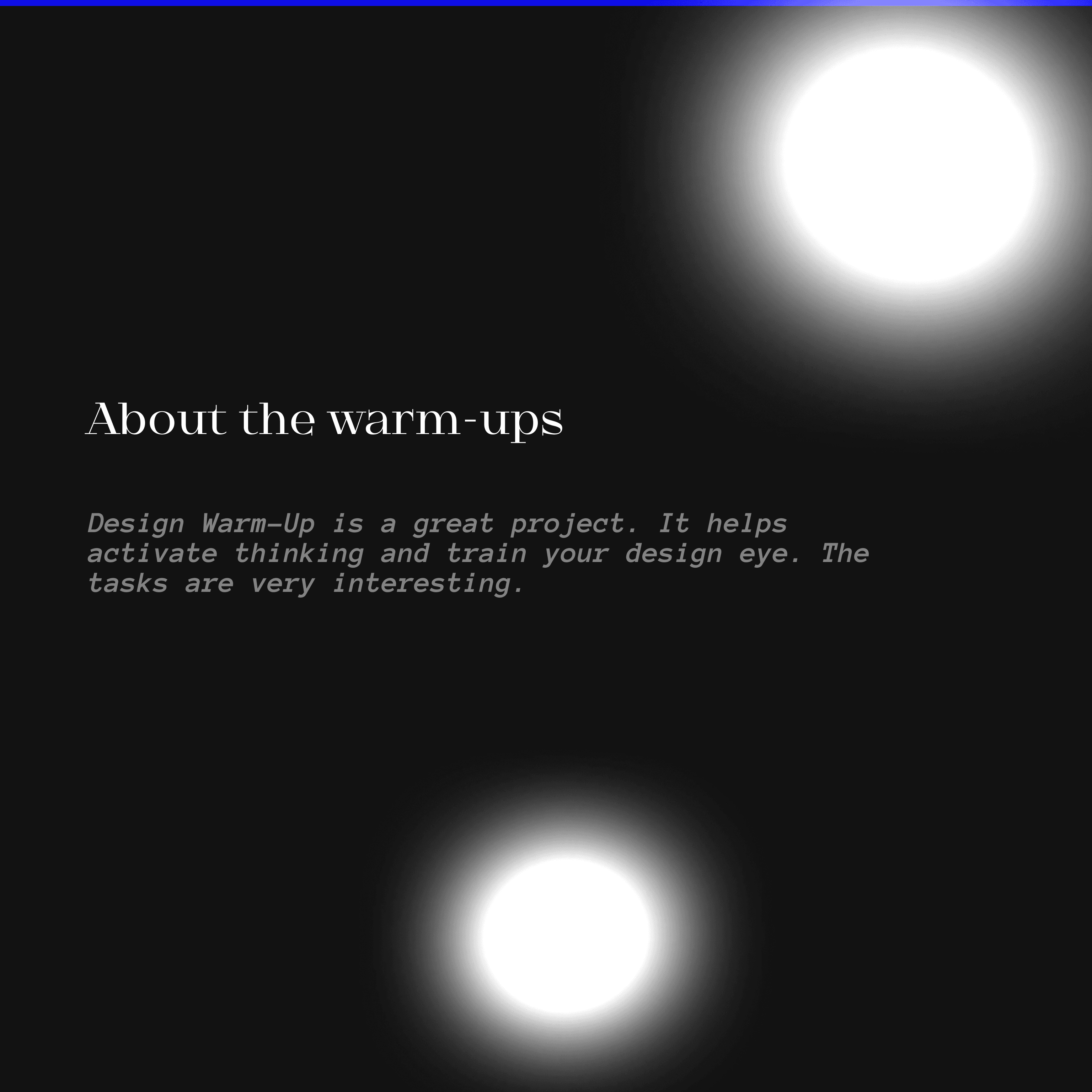 Short clips from our community sessions — motion experiments, UI micro-interactions and playful concepts created by guests during Design Warm-up.