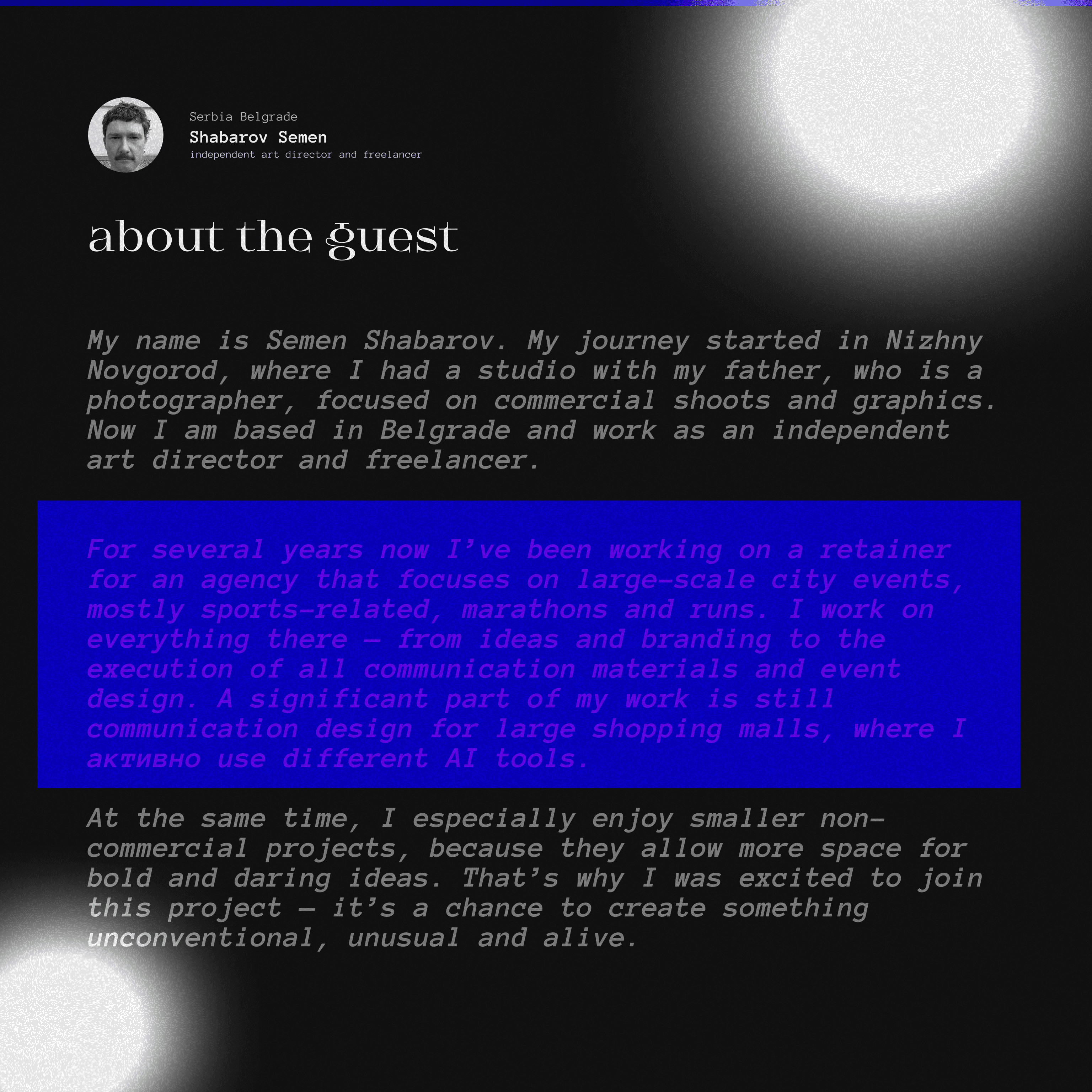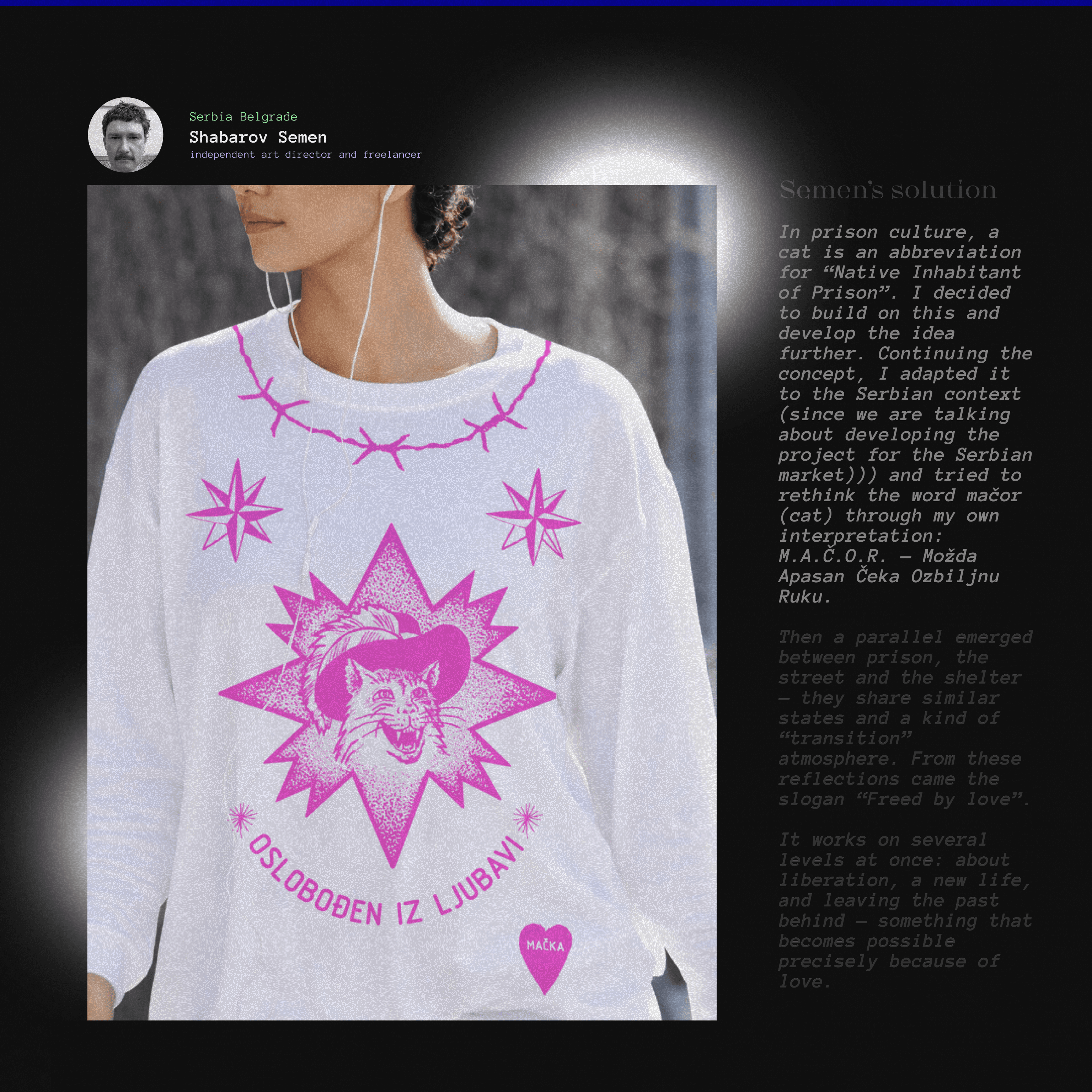 Every session, an invited industry leader shares a task based on real product and communication cases. Designers solve it in their own way and submit their work. The leader personally reviews selected solutions and gives free, practical feedback — so participants get a chance to work directly with a top expert, not just watch a talk.
